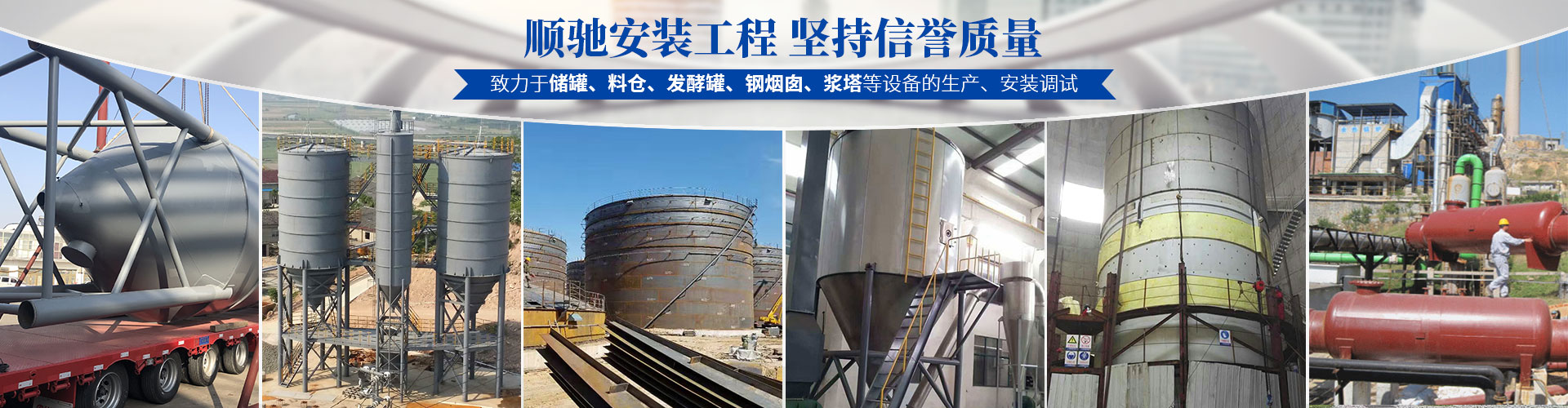 儲罐、料倉、發酵罐、鋼煙囪、漿塔等設備的生產與安裝